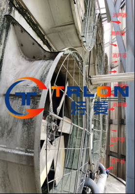 項目原采用的側(cè)出風冷卻塔,配備6葉片窄葉片高轉(zhuǎn)速風機,運行噪音較大,而且目前所有動力系統(tǒng)均出現(xiàn)嚴重腐蝕現(xiàn)象,原來出風口已經(jīng)安裝消聲墻體,但低頻聲依然對周邊辦公及居住環(huán)境造成影響。